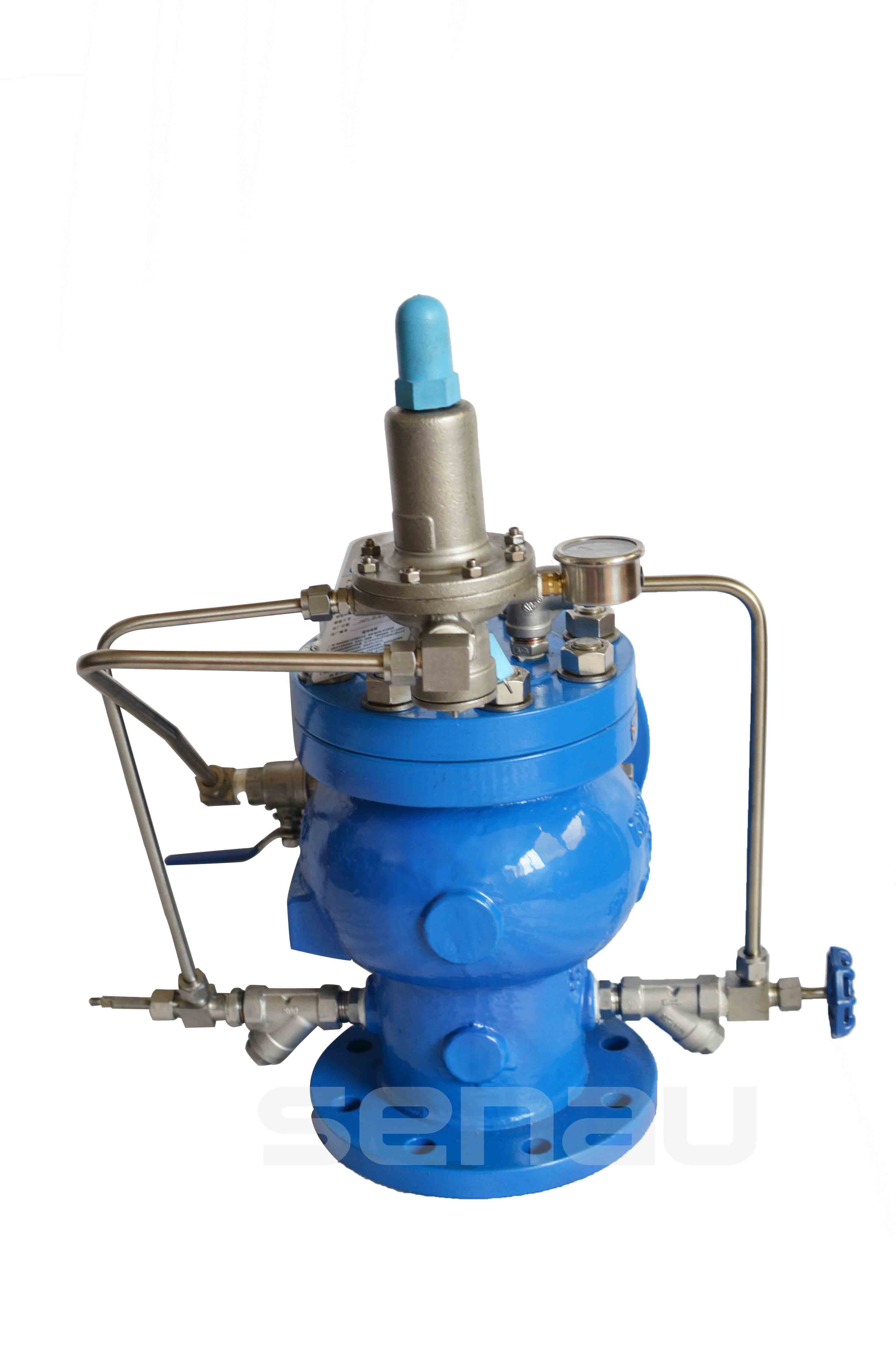 EG5001/GA6600/GA6700水擊預防閥,水擊泄放閥主要由主閥、高壓水力導閥、導管等零件組成。具有水力自動控制、高壓無條件開啟泄除水錘的功能。該閥操作平衡無振動,具有獨一無二的V型開口閥瓣和差動活塞設計,在任何工作壓力下都能給與可靠的關閉推動力,調節性能優秀,運行平穩,不會產生自身關閉水錘,大孔道高敏感的泄壓導閥響應過壓條件快速開啟主閥(水擊泄放閥),當壓力平息后可快速關閥。