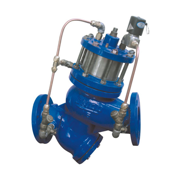 主閥上腔控制室的水不能流出,控制室升壓,推動活塞關閉主閥;本產品利用導閥控制閥門的開啟和關閉,反映準確快速,采用三向電磁閥,維護簡單;安裝于各類給水系統(tǒng)的管道上。
