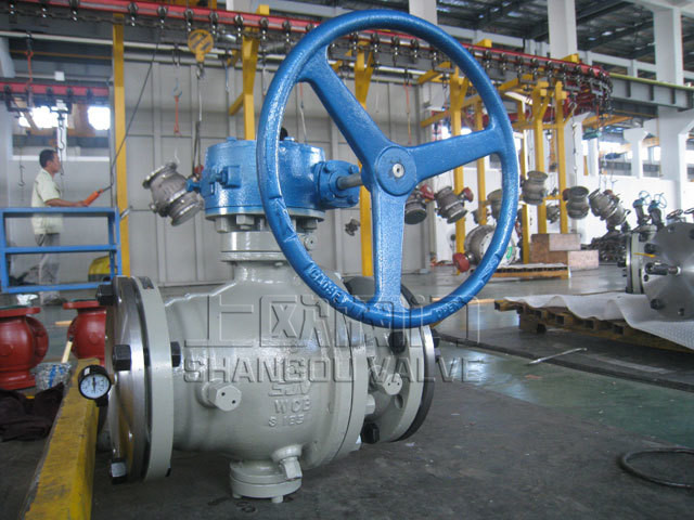(1)操作省力:球體由上下軸支撐,減少摩擦,消除了由于進□壓力推動球體與密封座形成的巨大密封負荷而造成過大的扭矩。